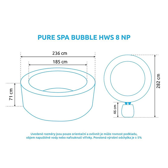 - Vonkajší priemer: 236 cm (po naplnení vodou, tolerancia ± 5%)