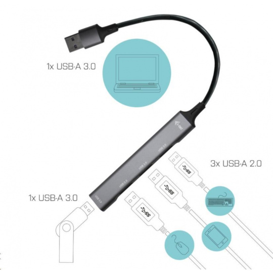 i-tec USB 3.0 Kovový HUB 1x USB 3.0 + 3x USB 2.0