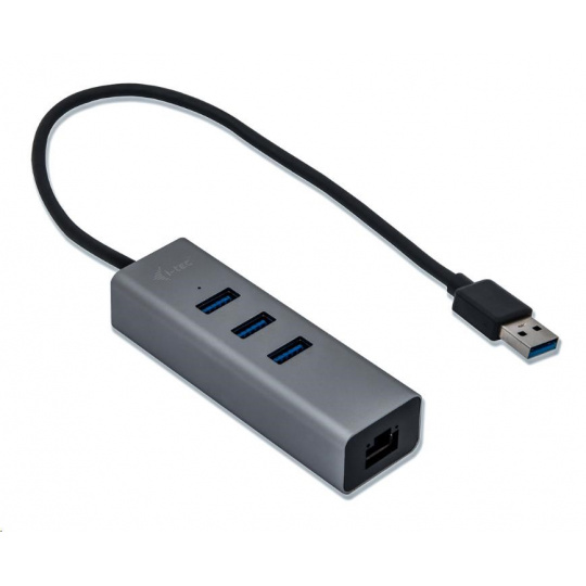 - i-tec USB 3.0 Kovový HUB 3 porty + Gigabit Ethernet adaptér s káblom (28 cm)