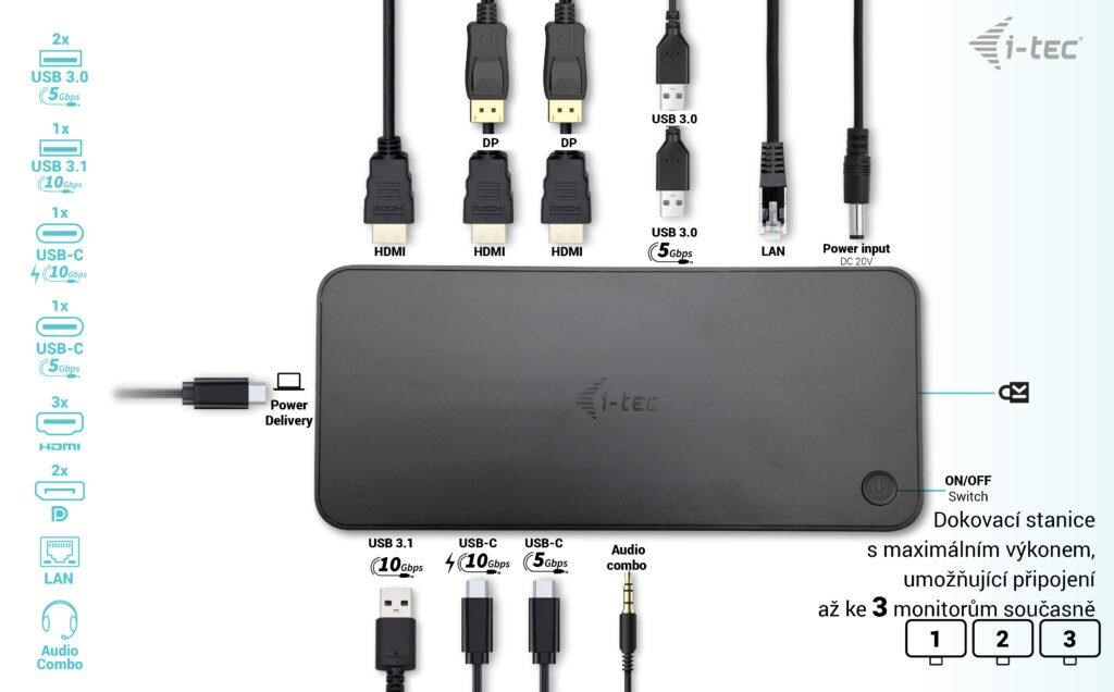 i-tec USB 3.0 / USB-C / Thunderbolt, 3x 4K dokovacia stanica + Power Delivery 100W