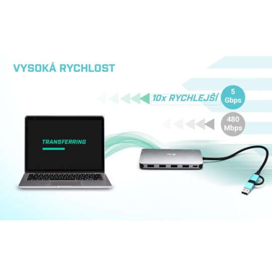 5 USB portov, spoľahlivé a rýchle pripojenie do podnikovej siete vďaka integrovanému LAN portu a nativná podpora VGA, to všetko robí z tejto dokovacej stanice ideálneho spoločníka pre profesionálov, ktorí sú často na cestách a potrebujú pripojenie aj k starším monitorom a projektorom. Samozrejmosťou je podpora nabíjania vášho notebooku či tabletu (až 100 W).