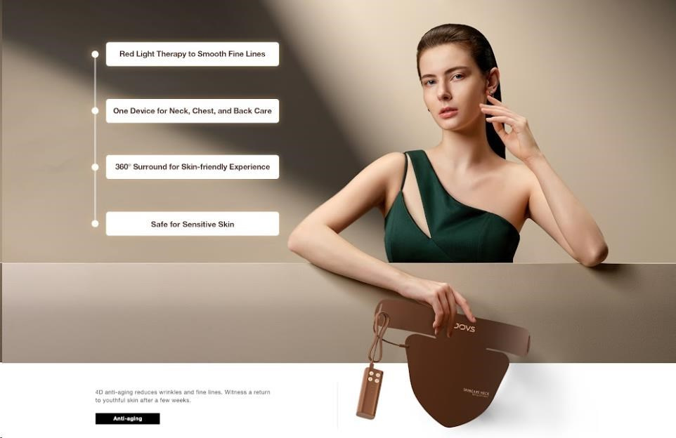 Péče o pleť nekončí u tváre. Objavte profesionálne ošetrenie pre často opomínané partie a doprajte si luxus, ktorý vaša pokožka na krku, v dekolte a na chrbte pocíti aj uvidí. Predstavujeme vám svetelnú masku JOVS, inovatívne riešenie od prémiovej značky, ktorá prináša technológie z estetických kliník priamo k vám domov. Zbohom nedokonalostiam a odhaľte mladistvejšiu a žiarivejšiu pokožku bez nutnosti drahých a časovo náročných procedúr v salónoch.
