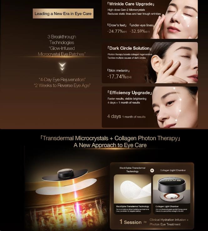 Očné okolie je najjemnejšia a najzraniteľnejšia časť nášho tváre, ktorá stárne až 8-krát rýchlejšie ako zvyšok tváre. Doprajte mu starostlivosť, ktorú si zaslúži, a objavte revolučné riešenie, ktoré prináša výsledky porovnateľné s profesionálnymi klinikami. Predstavujeme vám JOVS RevivaEye, prvé mikrokrystalické očné náplasti s technológiou "Blackthorn" a svetelnou terapiou na trhu. Značka JOVS opäť kombinuje špičkovú vedu a luxusnú starostlivosť, aby vám poskytla komplexné omladenie očného okolia z pohodlia domova.