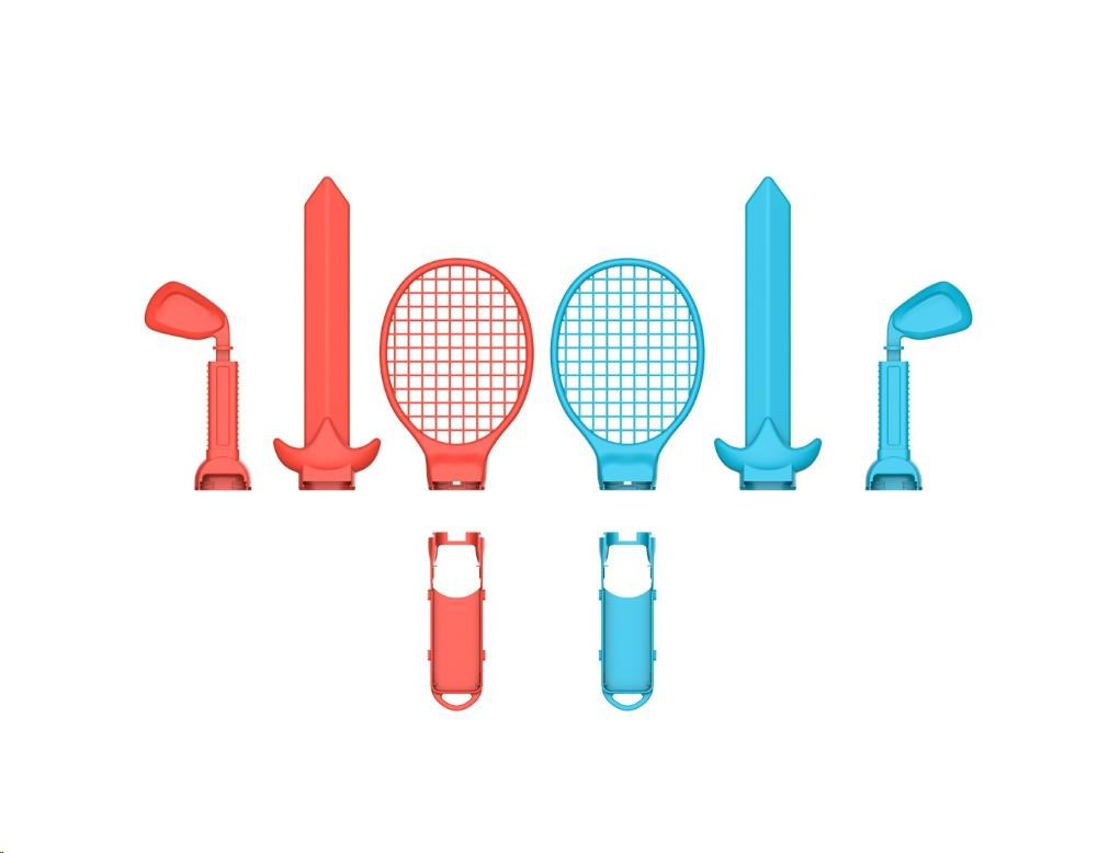 Obsah balenia: 2 závodné volantom, 2 tenisové/badmintonové rakety, 2x 2v1 popruhy, 2 meče, 2 golfové palice, 2 pištole, 2x rukoväte Joy-Con, 2x adaptéry.
