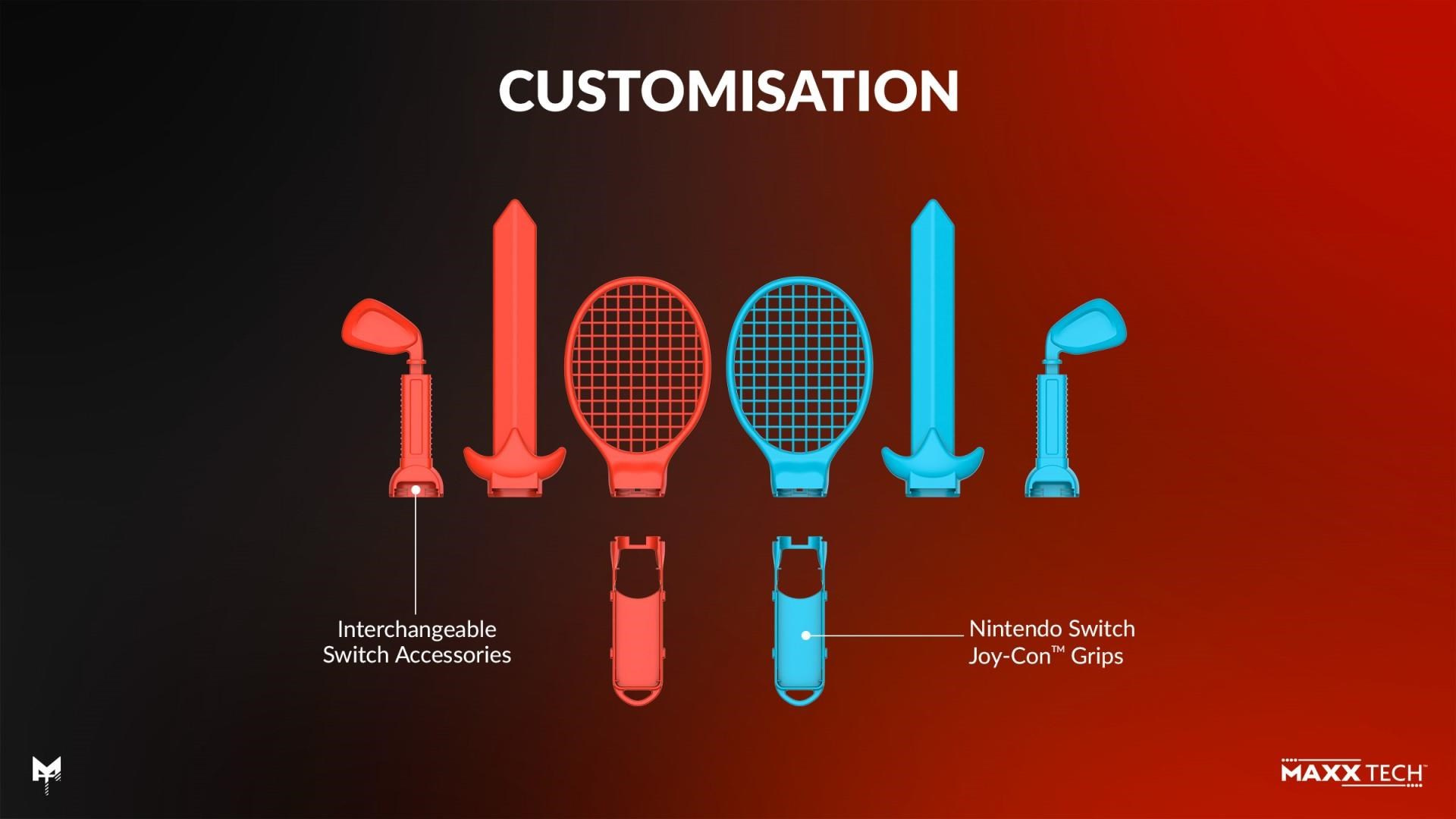 12v1 Joy-Con Sports Kit je kompatibilný s oboma konzolami Nintendo Switch™ 2 a 1, čo vám umožní vychutnať si svoje obľúbené hry na ktorejkoľvek konzole.