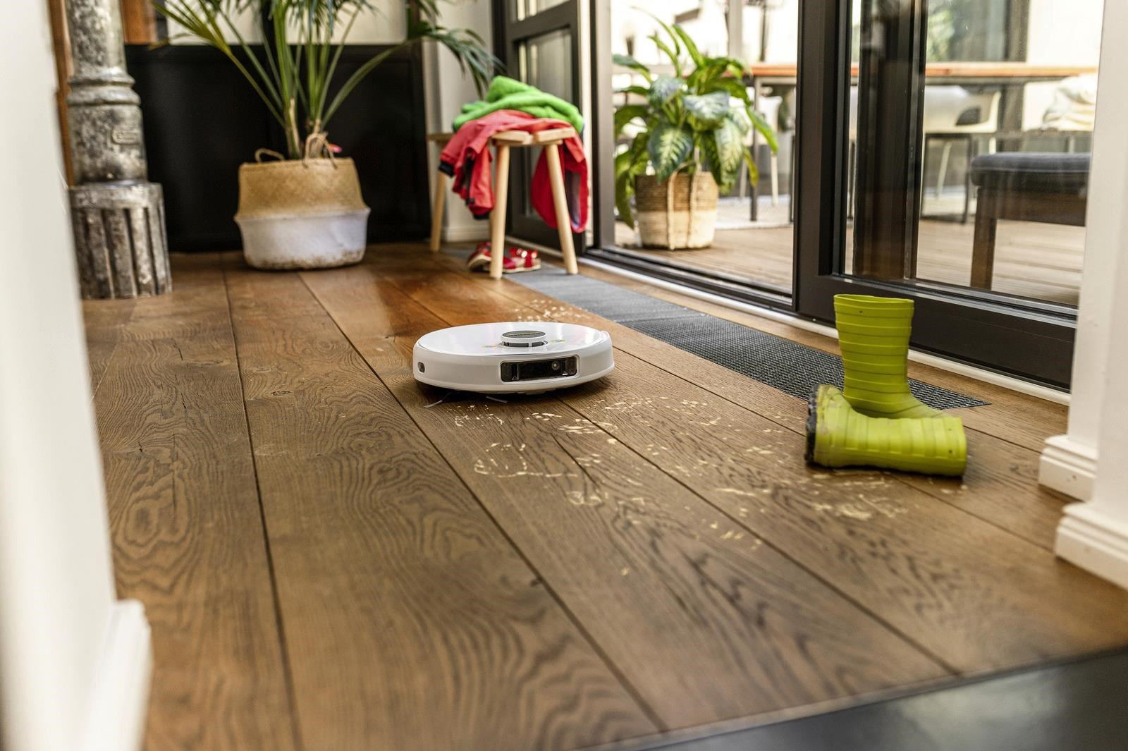 RCV 5 automaticky detekuje kobercové povrchy pomocou ultrazvukového senzora a zobrazuje ich na mape v aplikácii. Ak je aktivované mokré mopovanie, robot sa detekovaným kobercovým povrchom vyhne a obíde ich. Funkcia Auto Boost podľa potreby zvyšuje sací výkon na kobercových plochách pre ešte lepšie výsledky upratovania.