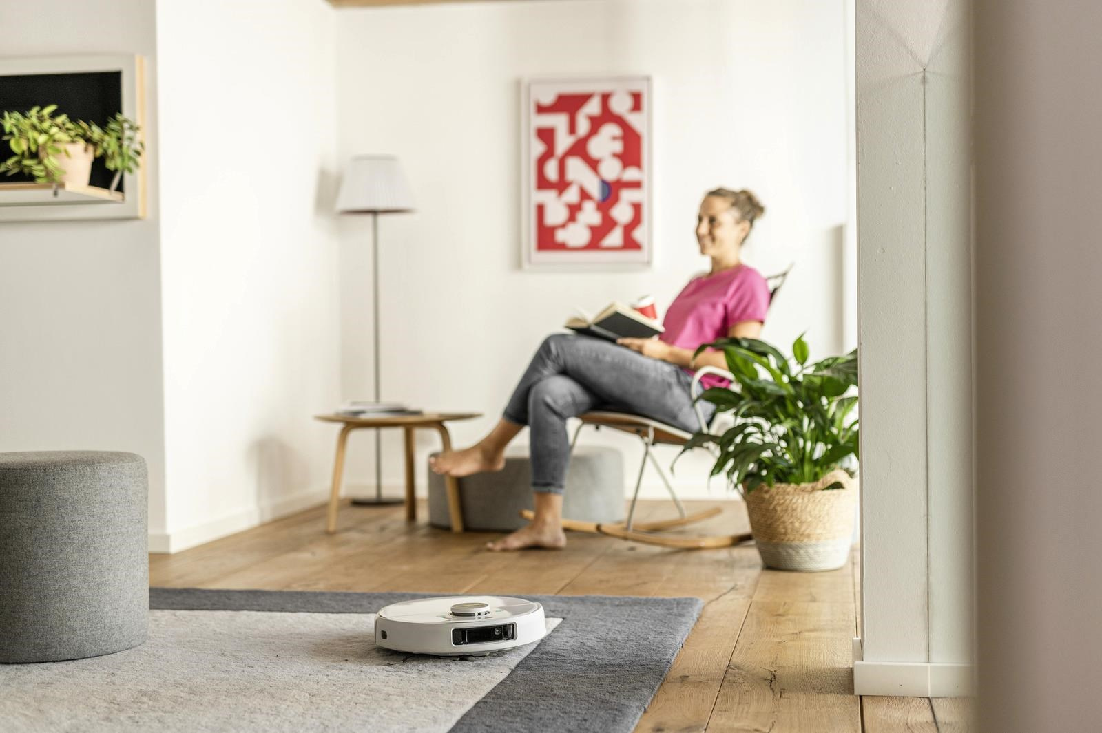 Tvrdé podlahy a koberce s nízkým vlasem čistí chytrý čistiaci robot RCV 5 samostatne a systematicky. Suché nečistoty sú transportované do vstavaného odpadu do nádoby na odpad rotačným kefou, bočnou kefou na okraje a ventilátorom. Ultrazvukový senzor rozpozná koberce, ktoré by bolo lepšie vyčistiť pomocou funkcie Auto Boost pre maximálny sací výkon. RCV 5 nielen vysáva, ale vie tiež mokré vytieranie. V režime mopovania sa kobercov automaticky vyhýba. Prostredníctvom aplikácie je RCV 5 vyslaný na prieskumnú cestu a automaticky vytvorí mapu miestností na základe detekcie okolia (LiDAR). Pre každú miestnosť je možné nastaviť individuálne parametre upratovania. Napríklad, ktoré miestnosti sa majú vysávať, vytierať alebo neukladať. Vďaka duálnemu laserovému systému s kamerou najvyšší model RCV 5 tiež detekuje a vyhýba sa plochým prekážkam, ako sú káble, ponožky alebo topánky. Ďalšie senzory bránia pádu zariadenia napríklad zo schodov. Pre upratovanie môžete RCV 5 pohodlne spustiť prostredníctvom aplikácie, pomocou prednastaveného individuálneho plánu alebo stlačením tlačidla na zariadení. Ak upratovací robot potrebuje pomoc, v mnohých situáciách vám to oznámi prostredníctvom hlasového výstupu.