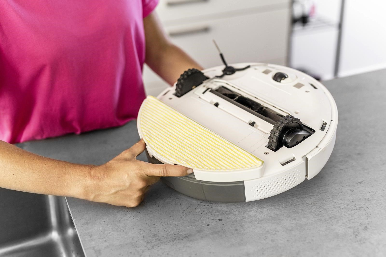 Pre ešte lepšie výsledky upratovania môže RCV 5 mopovať aj na vlhko. V prípade potreby použite stieraciu jednotku s utierkou z mikrovlákna, naplňte nádržku na čerstvú vodu a môžete vyraziť. Upratovací robot RCV 5 je možné používať buď iba na suché čistenie, alebo iba na mokré vytieranie, alebo s oboma možnosťami dohromady v kombinovanom režime upratovania.