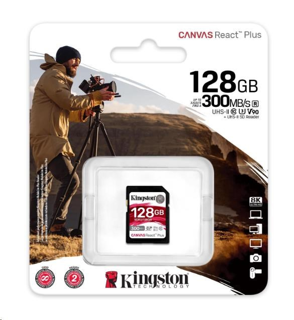 Kingston 128GB Canvas React Plus SDXC UHS-II 300R/260W U3 V90 pre Full HD/4K/8K