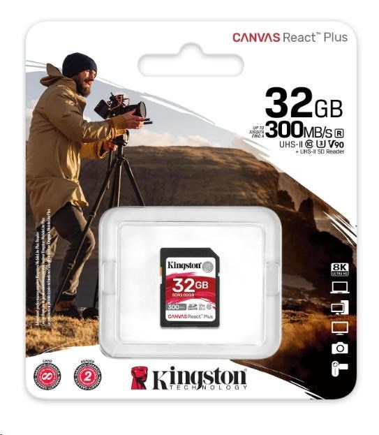 Kingston 32GB Canvas React Plus SDHC UHS-II 300R/260W U3 V90 pre Full HD/4K/8K