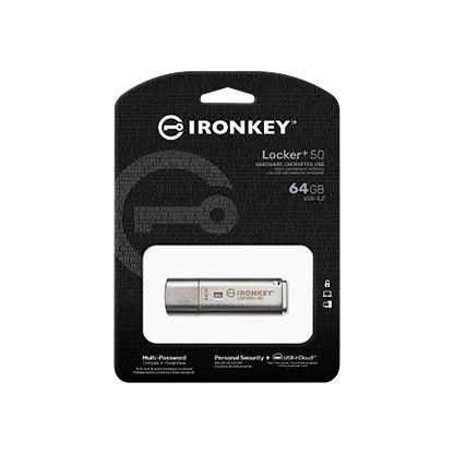 USB flash disky Kingston IronKey Locker+ 50 poskytujú zabezpečenie spotrebiteľskej triedy s hardvérovým šifrovaním AES v režime XTS vrátane zabezpečenia BadUSB s digitálne podpísaným firmvérom a ochrany proti útokom hrubou silou. Séria LP50 je kompatibilná aj s TAA.