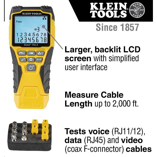 KLEIN TOOLS - VDV Scout® Pro 3 Tester Kit - 5x RJ45, 5x F-konektor