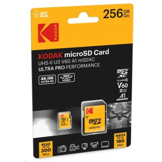 Kodak paměťová micro SD karta 256GB UHS-II U3 V60 Pro +adapt