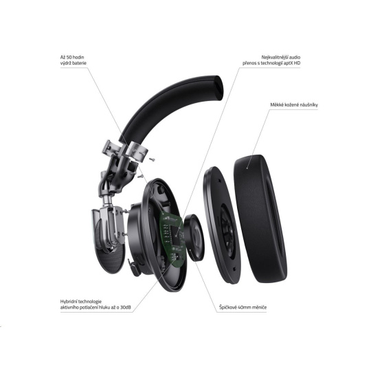Na první pohled tě zaujmou jedinečným titanovým designem, na první dotek se ti zalíbí luxusním zpracováním a na první poslech tě přesvědčí, že sis vybral správně. Sluchátka vydrží na jedno nabití až 50 hodin (25 hodin se zapnutým ANC), takže jsou ready na týden v officu i let kolem zeměkoule. Pokud potřebuješ volný ruce, při hovorech ti pomůže zabudovaný mikrofon. A kdyby ses chtěl vrátit ke starý dobrý klasice, klidně do nich můžeš i zapojit 3,5 mm jacka.