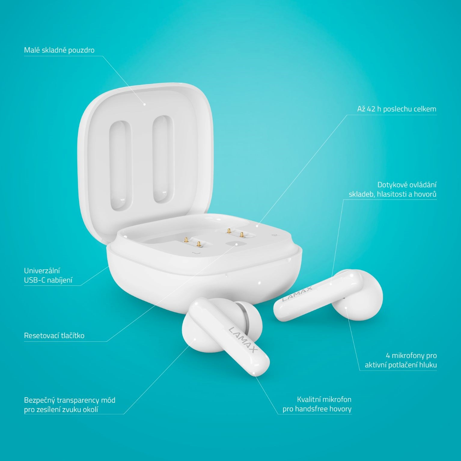 Predstav si ten najlepší zvuk, čo môžeš, a ešte mu kúsok pridaj. Potom to celý zabal do top designu a dostaneš LAMAX NeoPods1 ANC. Bezdrôtové špuntové slúchadlá s nožičkou do uší, čo majú výdrž až 8 hodín a cez Bluetooth 5.3 sa bleskovo spoja s tvojím telefónom. Taký pôžitok z počúvania si ešte nemal a gameri si ho o kus zvýšia vďaka hernému módu. Prepínanie trackov aj prijímanie hovorov zvládneš dotykom, radosť ti urobí aj kvalitný mikrofón. Fakt si užiješ dokonale čistý a vyrovnaný zvuk, AAC, SBC kodeky, ANC na potlačenie okolitého hluku a Transparency mode, čo zariadi zároveň bezpečné počúvanie. Cestuj, športuj alebo napríklad pracuj v rytme a so štýlom.
