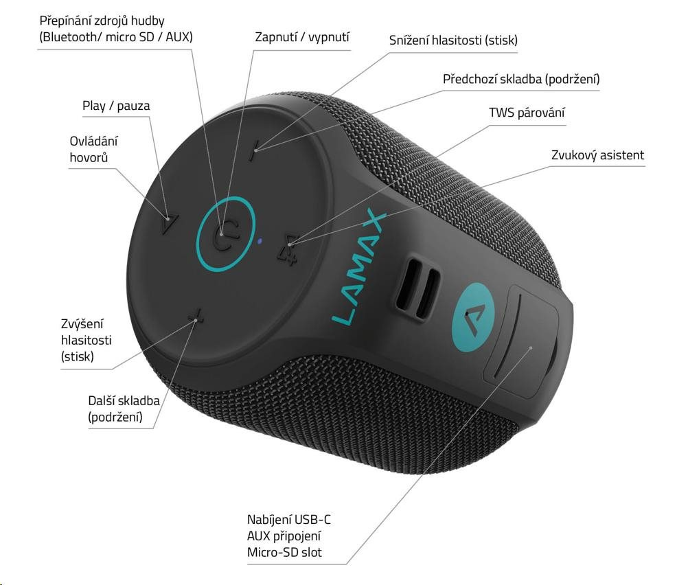 Vlož svoj playlist do vreckaDaj sa do pohody, či už si doma alebo práve zdolávaš Mount Everest. LAMAX Sounder2 Mini naplní tvoje uši čerstvým zvukom a s výdržou až 30 hodín ho len tak nevybiješ. Či chceš sústrediť sa, vypnúť alebo vyraziť von, jeho priestorový 360° sound, ľahká prenosnosť a najmodernejšie technológie ako Bluetooth 5.0 ti kdekoľvek vytvoria atmosféru. S vysokou vodoodolnosťou pokojne aj uprostred leje.