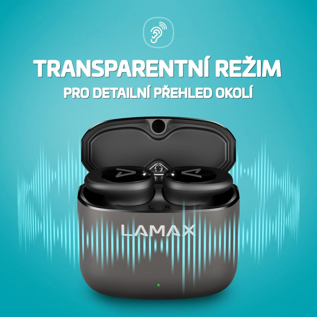 Špunty do uší a si v inom svete, bez hluku z MHD alebo diskutujúcich kolegov v práci. LAMAX SteelDots3 ANC aktívne potlačí okolité zvuky, nech si môžeš užívať svoj nadupaný playlist alebo obľúbené podcasty. Kontakt s realitou ale udržuje transparentný režim pre tvoju bezpečnosť. Čistý a vyrovnaný zvuk každého tónu ešte podporuje kompatibilita s kodekmi AAC a SBC. Tak isto mikrofón je kvalitka, takže pri volaní alebo videohovoroch ťa všetci jasne počujú. Zabudni na rozmotávanie káblov, Bluetooth 5.3 ťa okamžite automaticky pripojí. Ovládanie zvládneš bez návodov, je fakt jednoduché, dotykom vyriešiš všetko. Keď si mákneš pri športe a pot tečie prúdom, krytie IPX5 si s tým hravo poradí. Všetky tieto výhody si môžeš užívať až 8 hodín na jedno nabitie a ešte ďalšie máš v pevnom kovovom dobíjacom púzdre, takže suma sumárum až 30 hodín zábavy. Potom šťavu doplníš cez USB-C. Si ready na túto výzvu?