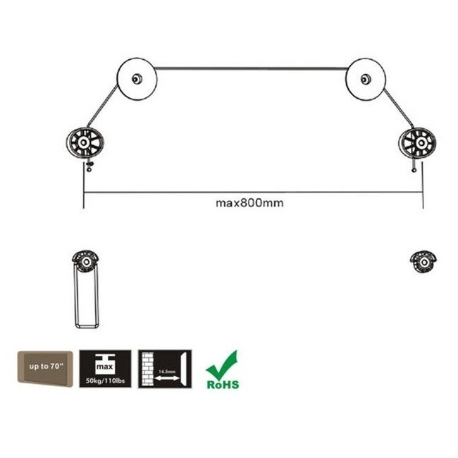 Lankový držiak na TV Fiber Mounts M5C57 Zavesný lankový držiak na TV 37-70", vzdialenosť TV od steny 14mm, jednoduchá inštalácia, lankový systém, VESA 200x200 až 800x400, nosnosť 50kg Špeciálny zavesný lankový držiak na zavesenie televízorov na stenu - odsadenie TV len 14 mm, možnosť odsadit TV od steny pre jednoduché zapojenie konektorov. Držiak má nosnosť 50kg a je vhodný najmä na tenké LCD, LED, OLED a QLED televízory alebo displeje. Podporuje VESA štandardy 200x200 až 800x400. Inštalácia je veľmi jednoduchá a rýchla, jednoduché je aj nastavenie TV do roviny. Súčasťou balenia je montážny materiál. Záruka 5 rokov. Špeciálny nástenný zavesný lankový držiak na televíziu Fiber Mounts F5M57 Technické údaje: nosnosť 50kg podporuje VESA štandardy 200x200 až 800x400 na televízie a displeje s uhlopriečkou 37" až 70" ideálny na tenké televízory, predovšetkým LCD, LED, OLED a QLED vzdialenosť televízora od steny len 14 mm jednoduché nastavenie obrazovky do presnej roviny možnosť odsadenia TV od steny pre ľahké zapojenie konektorov apod. bezpečné inovativné zavedenie televízorov na stenu pomocou lankového systému montážny materiál súčasťou balenia záruka 5 rokov Zavesný lankový držiak na LCD LED OLED a QLED TV Fiber Mounts F5M57 Lankový držiak na TV Fiber Mounts M5C57 podporuje VESA štandardy: VESA 200x200 VESA 300x200 a 200x300 VESA 300x300 VESA 400x200 a 200x400 VESA 400x300 a 300x400 VESA 400x400 VESA 500x300 a 300x500 VESA 600x400 VESA 800x400 Zavesný lankový držiak M5C57 je vhodný najmä na LCD, LED, OLED a QLED televízory alebo displeje. Zaviesť môžete všetky televízory s hmotnosťou do 50kg, ktoré podporujú ktorýkoľvek z uvedených VESA štandardov.