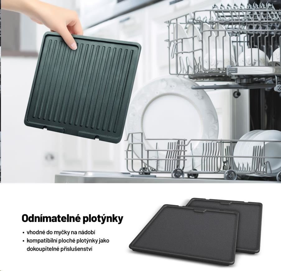 Obe grilovacie platničky sú odnímateľné a vhodné do umývačky riadu.