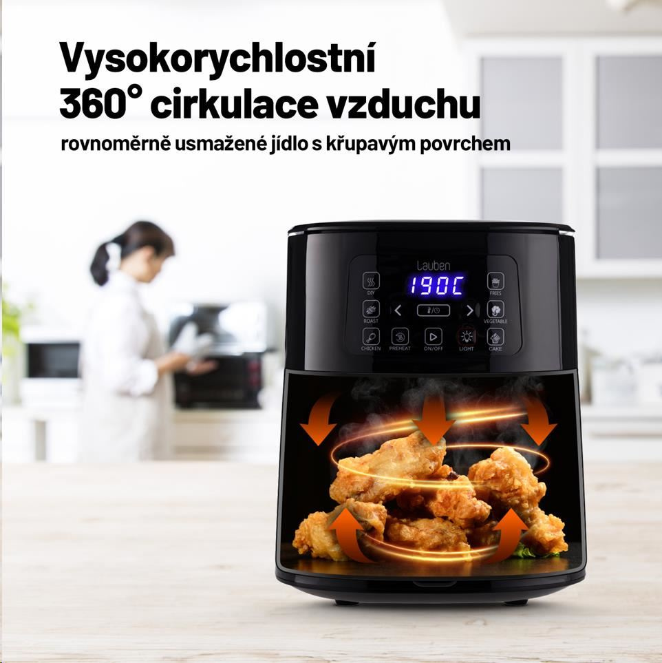 K smaženiu neodmysliteľne patrí veľa tuku, a preto sa tejto lákavej úprave často vyhýbame. S teplovzdušnou fritézou Lauben si môžete vychutnať svoje obľúbené jedlo s čistým svedomím. Vďaka 360° cirkulácii horúceho vzduchu ho totiž pripravíte aj bez tuku, alebo s minimálnym množstvom. Jedlo nebude mastné, ale zároveň si zachová chrumkavosť, chuť, vôňu i správnu štruktúru.