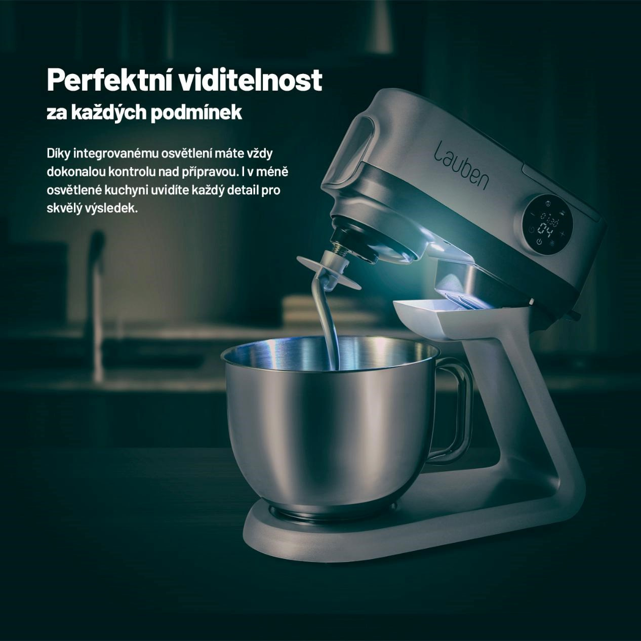 Kuchynský robot Lauben Kitchen Machine 1300SG vyniká nielen praktickosťou, ale aj vzhľadom. Jeho prémiový dizajn sa stane ozdobou každej kuchyne. Netreba sa obávať, že by putoval po kuchynskej linke, kam sa mu zachce. Protišmykové nožičky ho držia na mieste, aj keď spracováva veľmi tuhé cesto a plynulý prechod rýchlostí sa postará, aby zmena rýchlosti nespôsobila rozklepanie. Všetko potrebné na ovládanie sa dozviete z video tutoriálu a pre inšpiráciu na začiatky spoločného varenia a pečenia máte pribalenú kuchárku.
