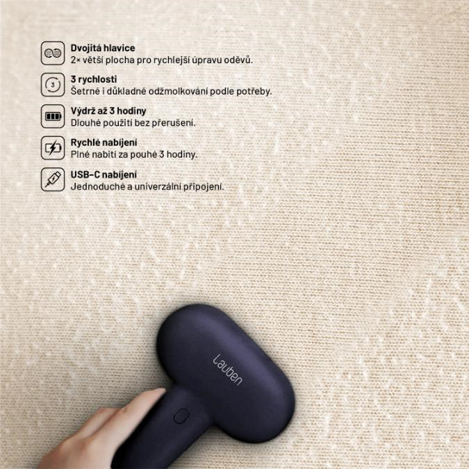 Niekedy stačí len málo, aby váš obľúbený sveter vyzeral ako nový. Lauben Lint Remover Dual 4AT je kompaktný a výkonný pomocník, ktorý si s nevzhľadnými žmolkami poradí za okamih – doma aj na cestách. Dvojitá hlava pokrýva dvojnásobnú plochu, takže svetre, kabáty alebo posteľné pokrývky môžete ošetriť rýchlejšie ako kedykoľvek predtým. Zariadenie ponúka tri rýchlosti, ktoré sa prispôsobia rôznym typom materiálov bez ich poškodenia. Vďaka výdrži batérie až 3 hodiny na jedno nabitie a modernému nabíjaniu cez USB-C je kedykoľvek pripravený vyraziť do práce.