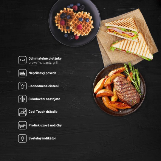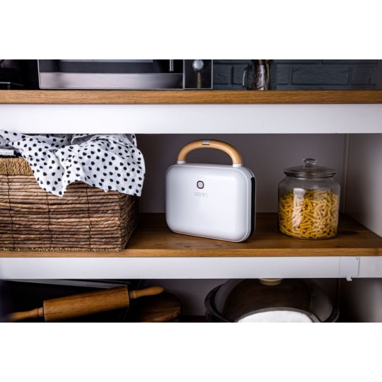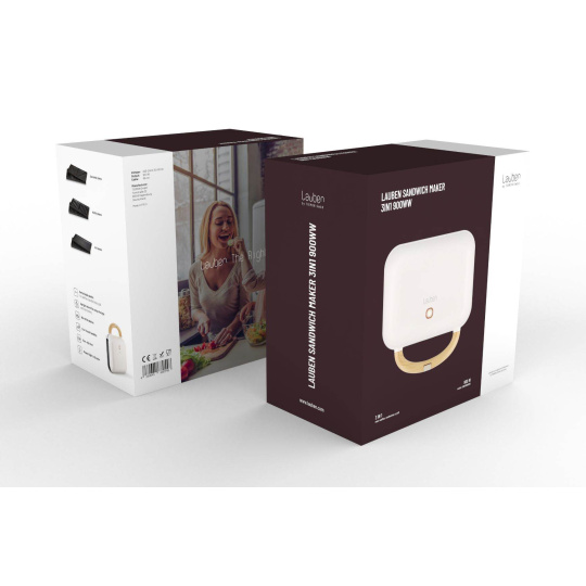 Chrumkavá raňajky, desiata aj rýchla večeraNemáte práve čas na prípravu teplého večere alebo vydatnej raňajky? S toastovačom Lauben zvládnete oboje za pár minút. Klasickými toasty so šunkou a syrom potešíte každé dieťa, rozhodne však u nich nemusíte skončiť. Sendvičovač Lauben si vďaka 3 sadám platní poradí aj so raňajkovou vafľou alebo grilovaním mäsa. Nahrejete ho behom chvíle a jedlo budete mať hotové skôr, než sa vám podarí všetkých svolať ku stolu. Teší vás aj ľahká údržba a skladovanie. Sendvičovač vertikálne uložíte do kuchynskej skrinky a vymeniteľné platne sa ľahko utrú hladkou stranou špongie na riad. Vďaka integrovaným protisklzovým nožičkám zostane počas prípravy jedla na mieste. Mysleli sme aj na bezpečný prevádzka. Cool Touch držadlo zabezpečí, že sa nikdy nespálite a prevádzku indikuje LED kontrolka na povrchu prístroja. Pridanou hodnotou je prémiový dizajn značky Lauben. Trendové off white prevedenie s dreveným dekorom sa totiž skvele hodí do každej kuchyne.