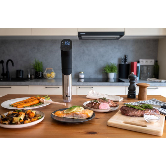 Chcete si vychutnať vynikajúce, zdravé jedlo, ktorého príprava vám nezaberie celý popoludnie? Chcete si doma pripraviť mäso, čo sa bude rozpadávať na jazyku, ale pritom nezničí objem a vždy si zachová svoj tvar a farbu? Nemusíte nutne chodiť do reštaurácie. Lauben Smart Sous Vide je ideálnym pomocníkom do kuchyne pre každého, kto chce ušetriť hodiny strávené pri sporáku, a predsa získať z ingrediencií maximum. Vďaka metóde varenia sous vide si pripravené jedlá zachovajú všetky chute, vône a živiny, o ktoré nechcete pri varení prísť. Varič jednoducho zapnete a ponoríte do hrnca s potravinami pripravenými vo špeciálnych zip lock vakoch, ktoré sú súčasťou balenia. O ostatné sa postará Lauben Smart Sous Vide, vy si len vychutnáte famózny výsledok.