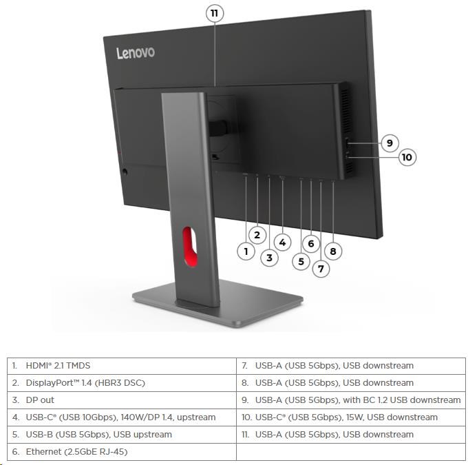 | USB port | 1x USB-C (USB 10Gbps,DP 1.4 Alt Mode HBR3, PD3.1 140W, USB upstream), 1x USB-B (USB 5Gbps, USB upstream), 3x USB-A (USB 5Gbps, USB downstream), 1x USB-A (USB 5Gbps, s BC1.2, USB downstream), 1x USB-C (USB 5Gbps, 15WPD, USB downstream) |
