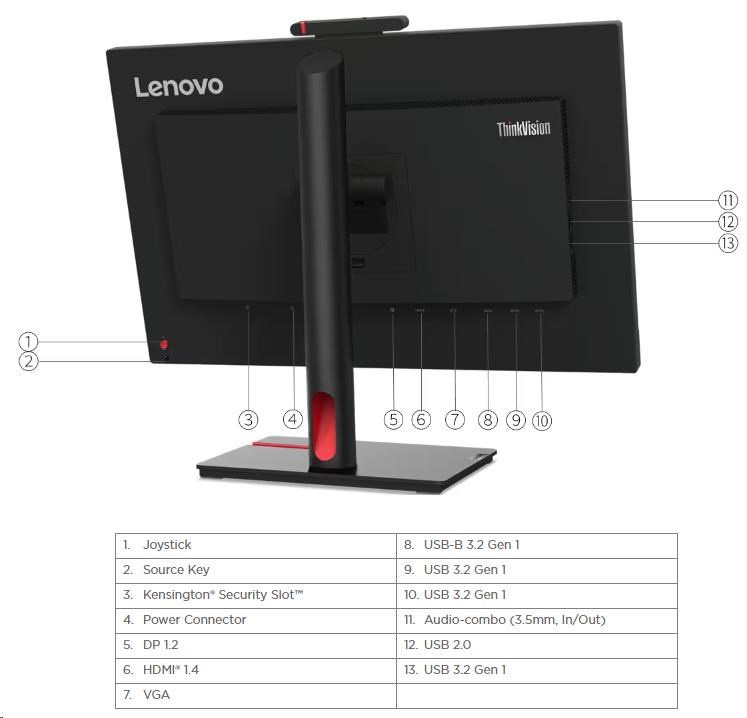 LENOVO LCD T24v-30 - 23.8”,IPS,matný,16:9,1920x1080,178/178,4ms/6ms,250cd/m2,1000:1,VGA,DP,HDMI,4xUSB,VESA,cam,rep,Pivot
