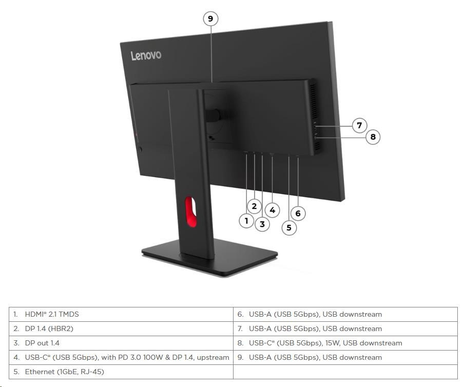 | Video signál | 1x HDMI® 2.1 TMDS, 1x DP 1.4 (HBR2), 1x DP 1.4 Out, 1x USB-C® (5Gbps, DP 1.4 Alt Mode HBR2) |