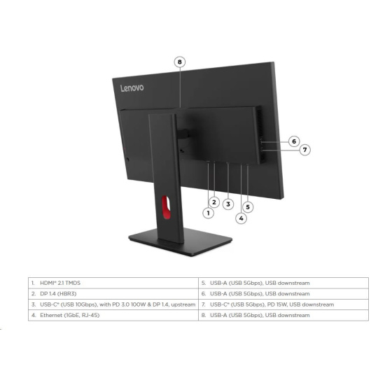 | Video signál | 1x HDMI® 2.1 TMDS, 1x DP 1.4 (HBR3), 1x USB-C® (5Gbps, DP 1.4 Alt Mode HBR3) |