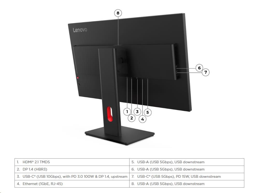 | Video signál | 1x HDMI® 2.1 TMDS, 1x DP 1.4 (HBR3), 1x USB-C® (10Gbps, DP 1.4 Alt Mode HBR3) |