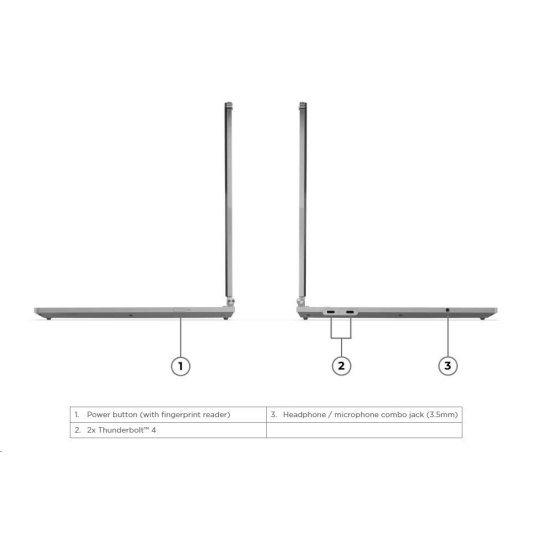 | Standartné porty | 2x USB-C® (Thunderbolt™ 4 / USB4® 40Gbps), with USB PD 3.1 and DisplayPort™ 2.1 1x Headphone / microphone combo jack (3.5mm) |
