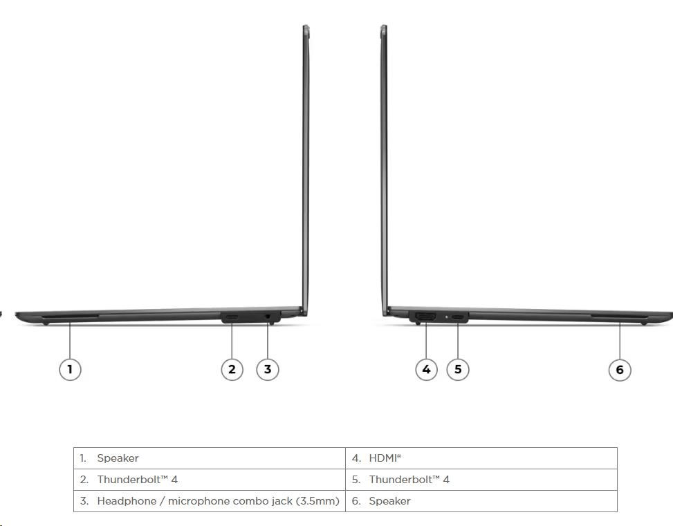 | Standartné porty | 2x USB-C® (Thunderbolt™ 4 / USB4® 40Gbps), with USB PD 3.0 and DisplayPort™ 2.1 1x HDMI® 2.1, up to 4K/60Hz 1x Headphone / microphone combo jack (3.5mm) |