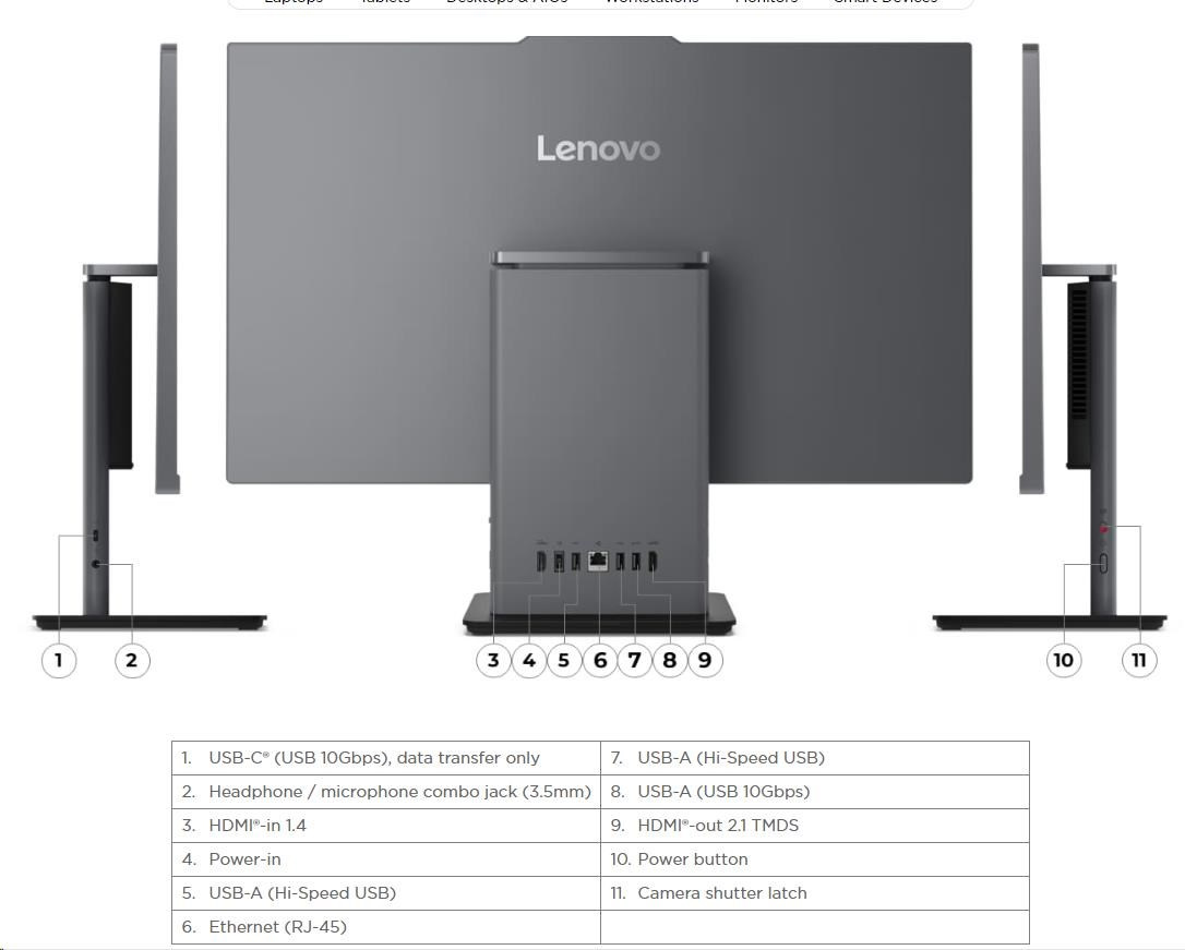 | Standartné porty | 1x USB-A (USB 10Gbps / USB 3.2 Gen 2) 2x USB-A (Hi-Speed USB / USB 2.0) 1x HDMI®-in 1.4 1x HDMI®-out 2.1 TMDS 1x Ethernet (RJ-45) 1x power connector |