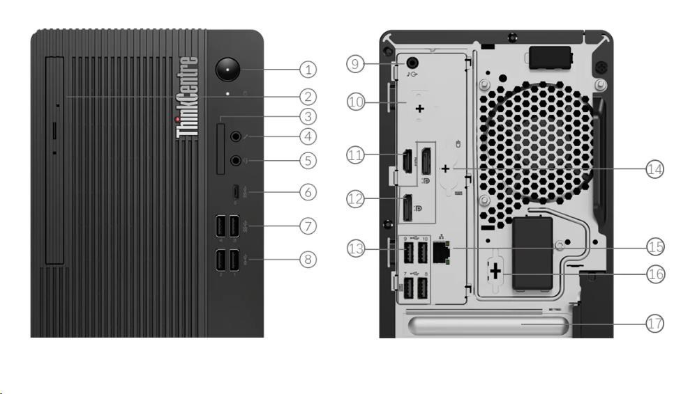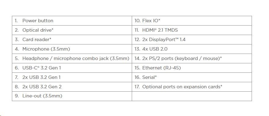 Predné porty | 1x USB-C® 3.2 Gen 1 (15W charging) 2x USB 3.2 Gen 1 2x USB 3.2 Gen 2 1x headphone / microphone combo jack (3.5mm) 1x microphone (3.5mm) |