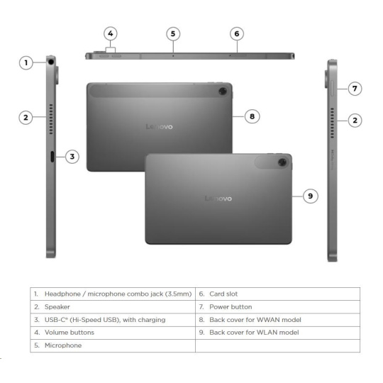 | Standartné porty | 1x USB-C® (Hi-Speed USB / USB 2.0), with charging, digital audio 1x Headphone / microphone combo jack (3.5mm) 1x Card slot |
