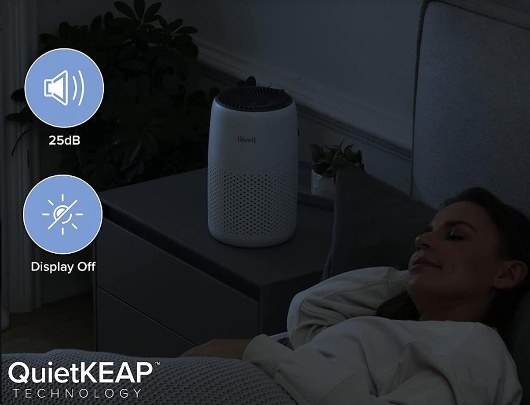 Vďaka patentovanej technológii QuietKEAPTM ani nebudete vedieť, že je čistička Levoit Core Mini v prevádzke. Pri najvyššom výkone dosahuje už aj tak nízku hlučnosť 44dB. Pre nerušený spánok sa priamo ponúka nočný režim, v ktorom je hlučnosť ešte nižšia – 25 dB. V nočnom režime sa tiež aktivuje tlmené osvetlenie a môžete si vypnúť podsvietenie ikoniek.