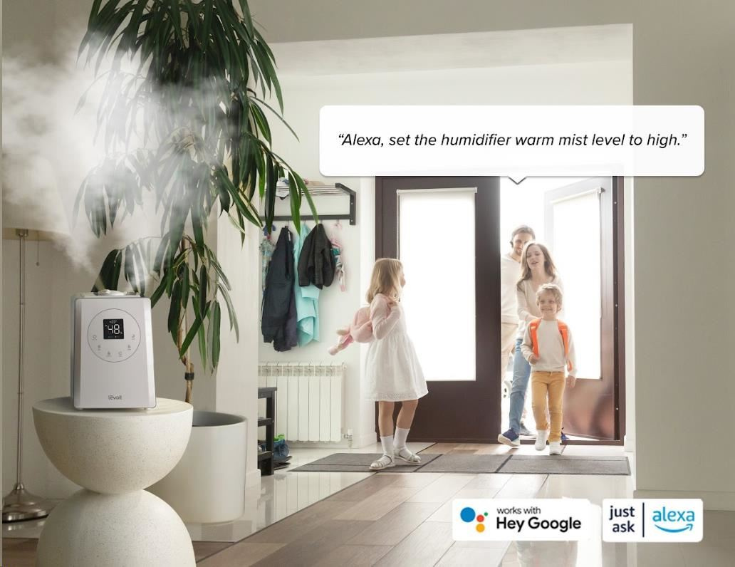 Zvlhčovač vzduchu Levoit LV600S Smart je možné ovládať priamo na prehľadnom podsvietenom LED displeji alebo aj cez aplikáciu na chytrých zariadeniach Apple alebo Android. Alebo si ho môžete dokonca pripojiť do svojho Smart Home a ovládať hlasom cez Google Assistant alebo Amazon Alexa. Senzor vlhkosti zobrazuje vlhkosť v reálnom čase av automatickom režime tak okamžite reaguje na zmeny vlhkosti. Vždy by sa malo jednať o rozmedzie medzi 40 % až 60 %. Cez aplikáciu si môžete informácie kontrolovať alebo si svoje režimy plánovať.