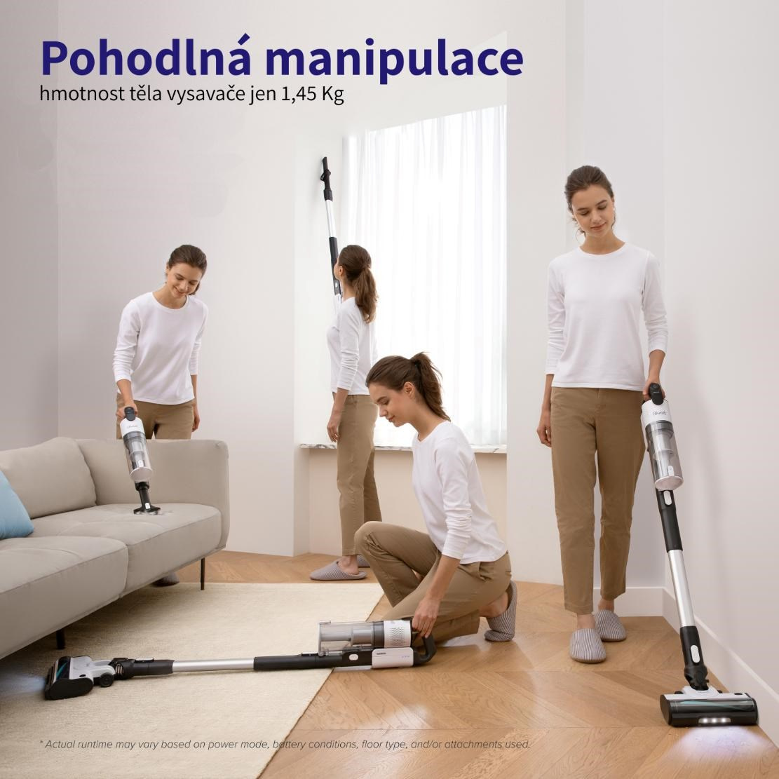 Vysávač je vybavený 180 W bezkartáčovým motorom napájaným z 2200 mAh batérie. Vďaka kombinácii moderného motora a veľkej batérie je vysávač nielen tichý, ale čo je dôležitejšie, vydrží naozaj dlho. Počas bežného upratovania dokáže vysávať až 50 minút, a to je dostatočný čas na vyčistenie celej plochy. Motor má 100 000 otáčok a poradí si aj s ťažšími nečistotami, ako je piesok a iný vonkajší materiál.
