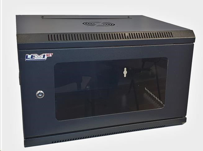LEXI-Net 19" nástěnný rozvaděč 12U 600x450, nosnost 60 kg, skleněné dveře, rozložený, černý