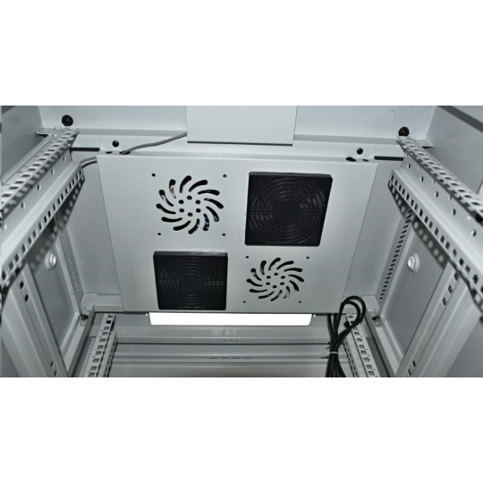 LEXI-Net 19" stojanový rozvaděč 22U 600x600 rozebiratelný, ventilační jednotka, termostat, kolečka, 600kg, sklo, šedý