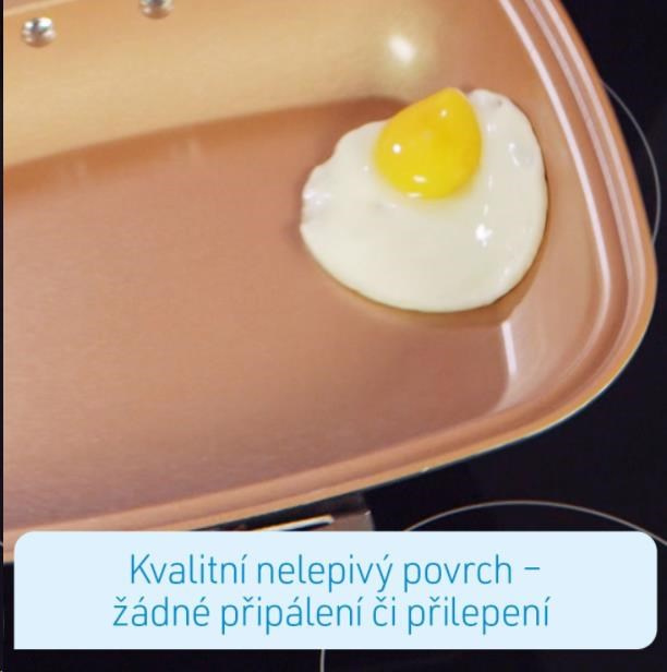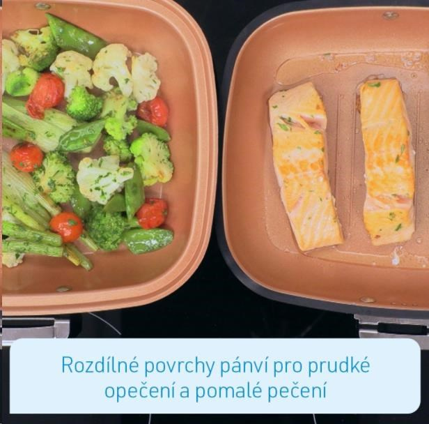 Livington Black Doubletta je inovativným vylepšením miliónkrát predaného kuchynského hitu Doubletta. V čom spočíva tajomstvo novej Livington Black Doubletty? Čtverečný tvar Vám zabezpečí dostatok miesta pri varení a umožní Vám prípravu dvoch jedál naraz. Livington Black Doubletta má extrémne odolné dno, ktoré ukláda teplo na oboch stranách, pre ešte lepšie výsledky. Vďaka prepracovanej cirkulácii sa teplo vo vnútri panvice rozloží okolo Vášho jedla rovnomerne, napríklad pri šetrnom, pomalom dusení, alebo varení v pare, alebo tiež pri grilovaní. Povrch panvice je potiahnutý nepriľnavou vrstvou, vďaka ktorej sa nič neprilepí, ani nepripáli. Flexibilné, silikónové tesnenie a ergonomická rúčka s geniálnym magnetickým uzáverom držia panvicu pevne uzavretú. Tým je zaručené perfektné varné prostredie. Nadbytočná para sa vypaľuje otvory na to určenými. Inak, než u bežných varných systémov, môžete Livington Black Doublettu kedykoľvek počas prípravy jedál otvoriť: napríklad keď chcete jedlo dochutiť korením, podliat vodou, alebo len ochutnať! Takto budete variť oveľa šetrnejšie, pod nižším tlakom. Vaše jedlá budú chutiť intenzívnejšie a na ich úžasnú chuť určite nezabudnete! A navzdory všetkému varíte pomocou Livington Black Doubletta oveľa rýchlejšie, než s ktoroukoľvek inou panvicou.