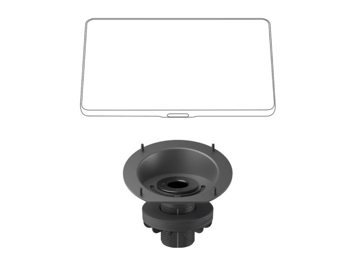 Zvýšený držiak, navrhnutý pre stoly v konferenčných miestnostiach so stredovým umiestnením otvorov pre priechodky, udržiava dotykový ovládač na mieste a navýši uhol sklonu displeja na 30° pre lepšiu čitateľnosť a jednoduchšiu obsluhu pri sedení. Zvýšený držiak pre Tap zachováva upravený vzhľad stolu tým, že umožňuje trasovanie káblov otvorom pre priechodku, a k tomu rotáciu v rozsahu 180° pre praktické ovládanie z oboch strán stolu.