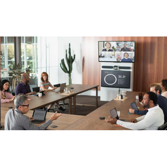 | Tlmenie vibrácií | Patentovaný systém tlmenia oddeľuje modul reproduktora od externého boxu, čím prakticky eliminuje vibrácie prenášané cez steny, stojany a stoly. Tým sa zvyšuje účinnosť funkcie potlačenia ozveny stolových mikrofónov Rally a zároveň sa zabezpečuje čistota a stabilita obrazu aj pri vysokých úrovniach hlasitosti a pri priblížení. Algoritmus obmedzujúci výšku zabraňuje aj krátkodobému orezaniu vysokých tónov reproduktora, aby sa potlačilo skreslenie |