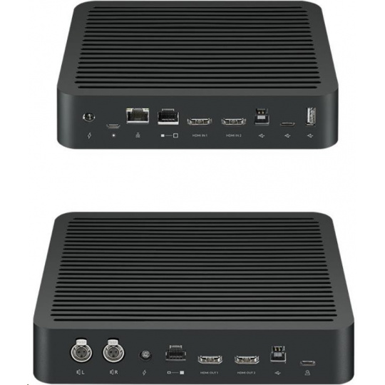 | Rally Image Hub | HDMI typ A (x2) (pripojenie k obrazovke) USB C (pripojenie ku kamere Rally) USB typ B (pripojenie k počítaču v rokovacej miestnosti) RJ45 (pripojenie k stolovému rozbočovaču) MiniXLR (x2) Napájanie pre jeden až dva reproduktory Rally Vstup napájania |