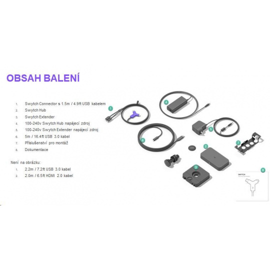 - Rozbočovač Swytch: Kompatibilný s držiakom Logitech PC (nie je súčasťou balenia)