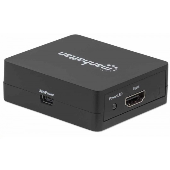 Jednoducho distribuujte jeden signál HDMI na viacero displejov.Manhattan 1080p 2-portový rozdeľovač HDMI posiela signály HDMI z jedného prehrávača Blu-ray, satelitného prijímača, digitálneho rekordéra, set-top boxu, hernej konzoly alebo iného zdroja HDMI na dva displeje HDMI. Flexibilné riešenie pre mnohé A/V aplikácieRozdeľovač HDMI Manhattan 1080p s 2 portami je ideálny na výstavy, do učební, na videokonferencie, prezentácie a maloobchodné aplikácie a je vybavený zabudovaným zosilňovačom na zvýšenie sily signálu. Je tiež dobrou voľbou na rozdelenie a distribúciu synchrónneho signálu na viacero displejov HDMI, keď je zdrojové zariadenie vzdialene uložené v zabezpečenej miestnosti alebo skrini. Používatelia môžu kaskádovať viacero jednotiek až do troch úrovní a vysielať obraz/zvuk HDMI na ďalšie displeje v široko distribuovaných aplikáciách.Kvalitná konštrukcia a jednoduchá inštaláciaPlná kompatibilita s HDMI, HDCP 1.0, 1.1 a 1.2, ako aj DVI 1.0 zaručuje, že 2-portový rozdeľovač HDMI Manhattan 1080p môže poskytovať dlhý servis a spoľahlivý výkon. Rýchlo pripojte káble HDMI (nie sú súčasťou balenia) a napájací kábel USB a toto cenovo dostupné riešenie HDMI je kompletné - nie sú potrebné žiadne zložité nastavenia ani konfigurácie softvéru alebo hardvéru.