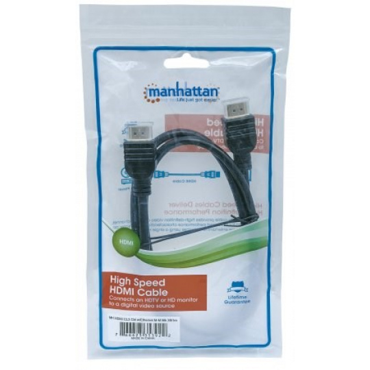 hDMI sa stalo štandardným digitálnym pripojením, ktoré poskytuje najkvalitnejší zvukový a obrazový signál prostredníctvom jediného kábla. Vysokorýchlostné káble HDMI Manhattan CL3 sú určené na inštaláciu do steny a vyznačujú sa konštrukciou odolnou proti oderu, pevným, ale pružným PVC plášťom a pozlátenými kontaktmi. Tento kábel, vytvorený na splnenie vyvíjajúcich sa potrieb trhu s vysokým rozlíšením a noriem protipožiarnej ochrany, poskytuje najvyššie možné rozlíšenie 4K x 2K, spätný zvukový kanál a šírku pásma 18 Gb/s pri frekvencii 600 MHz. Tieto vysokokvalitné káble poskytujú video s vysokým rozlíšením a viackanálový digitálny zvuk so zvýšenými výkonnostnými charakteristikami a vyššou presnosťou. Vysokorýchlostný kábel HDMI Manhattan CL3 s plne testovanými vysokými špecifikáciami a požiarnou odolnosťou v stene zabezpečí váš audio/video projekt na dlhé roky do budúcnosti.